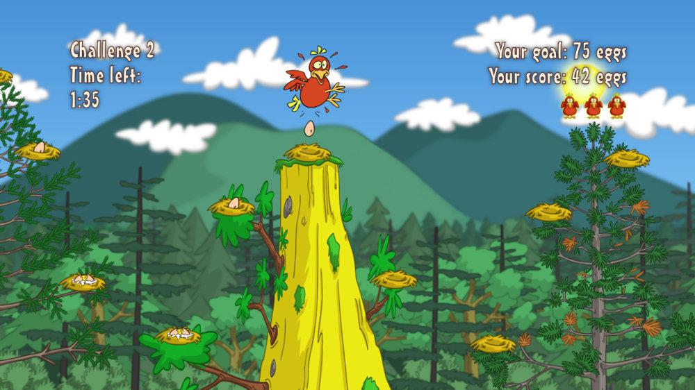 As I mentioned there are 5 levels in Cuckoo crack, but only two types of challenges, a score challenge where you are asked to rack up a score by laying eggs, and an egg laying challenge, which requires a certain number of eggs to be laid in a certain amount of time. Both types of challenges come with a timer of 3 minutes.